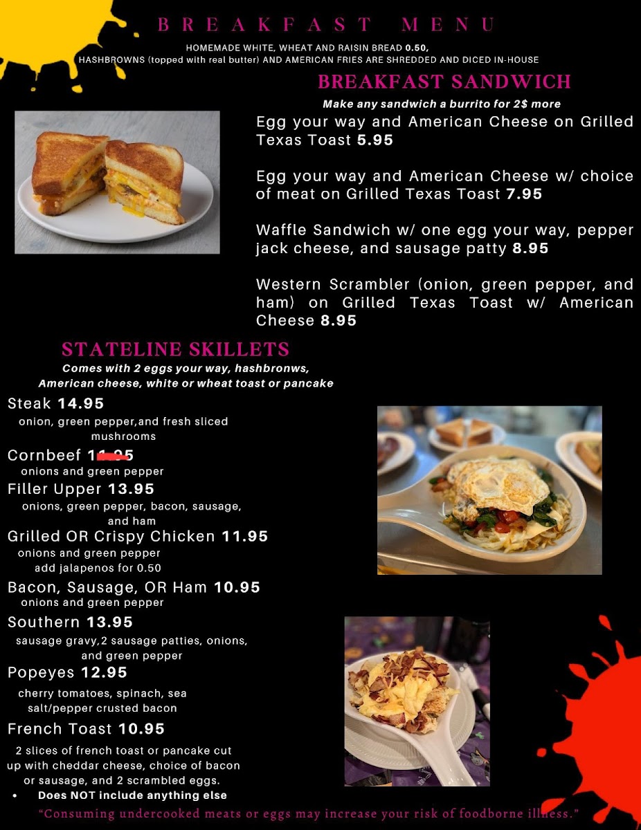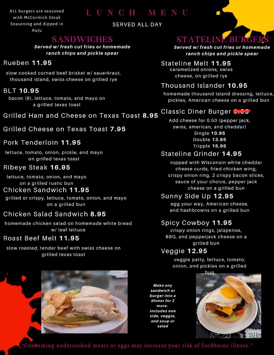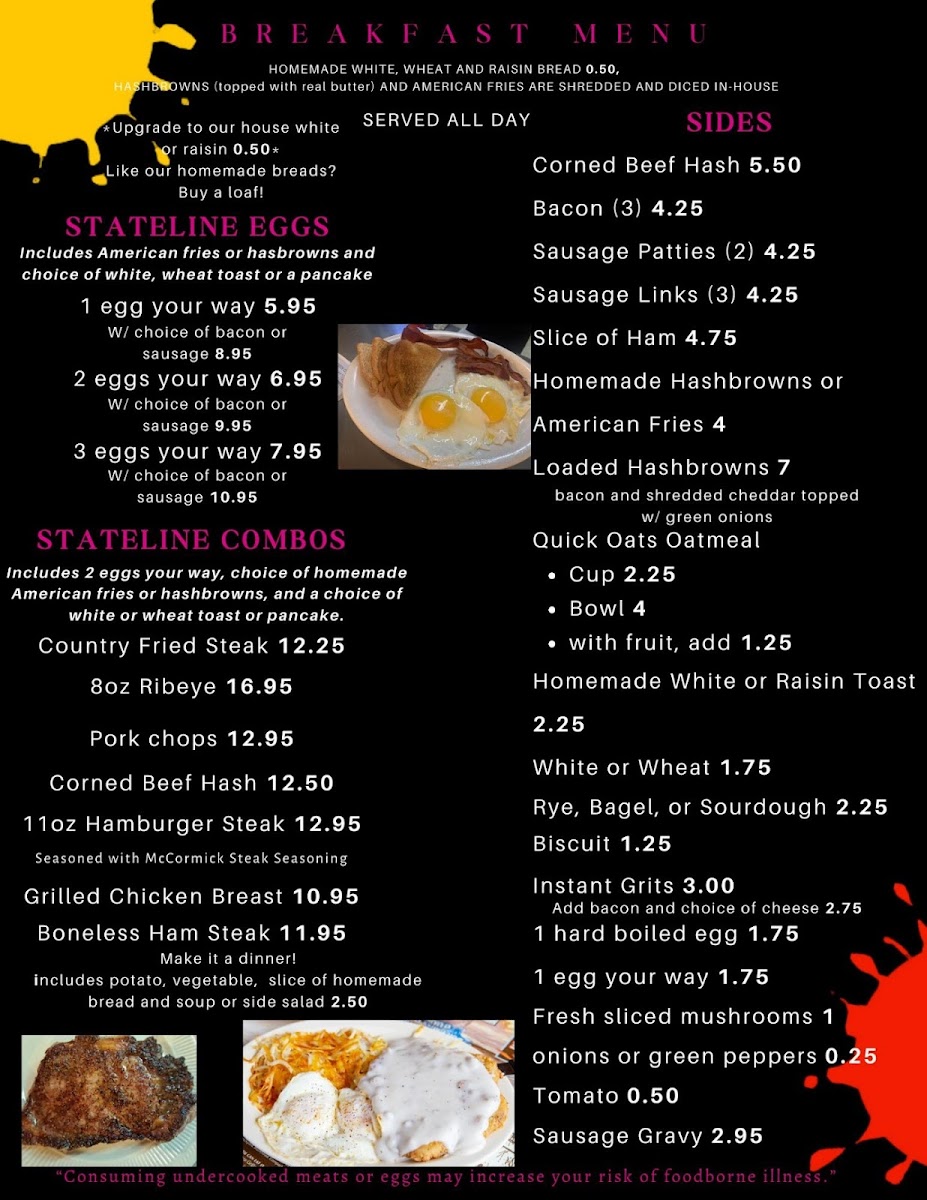 Stateline Cafe Menu